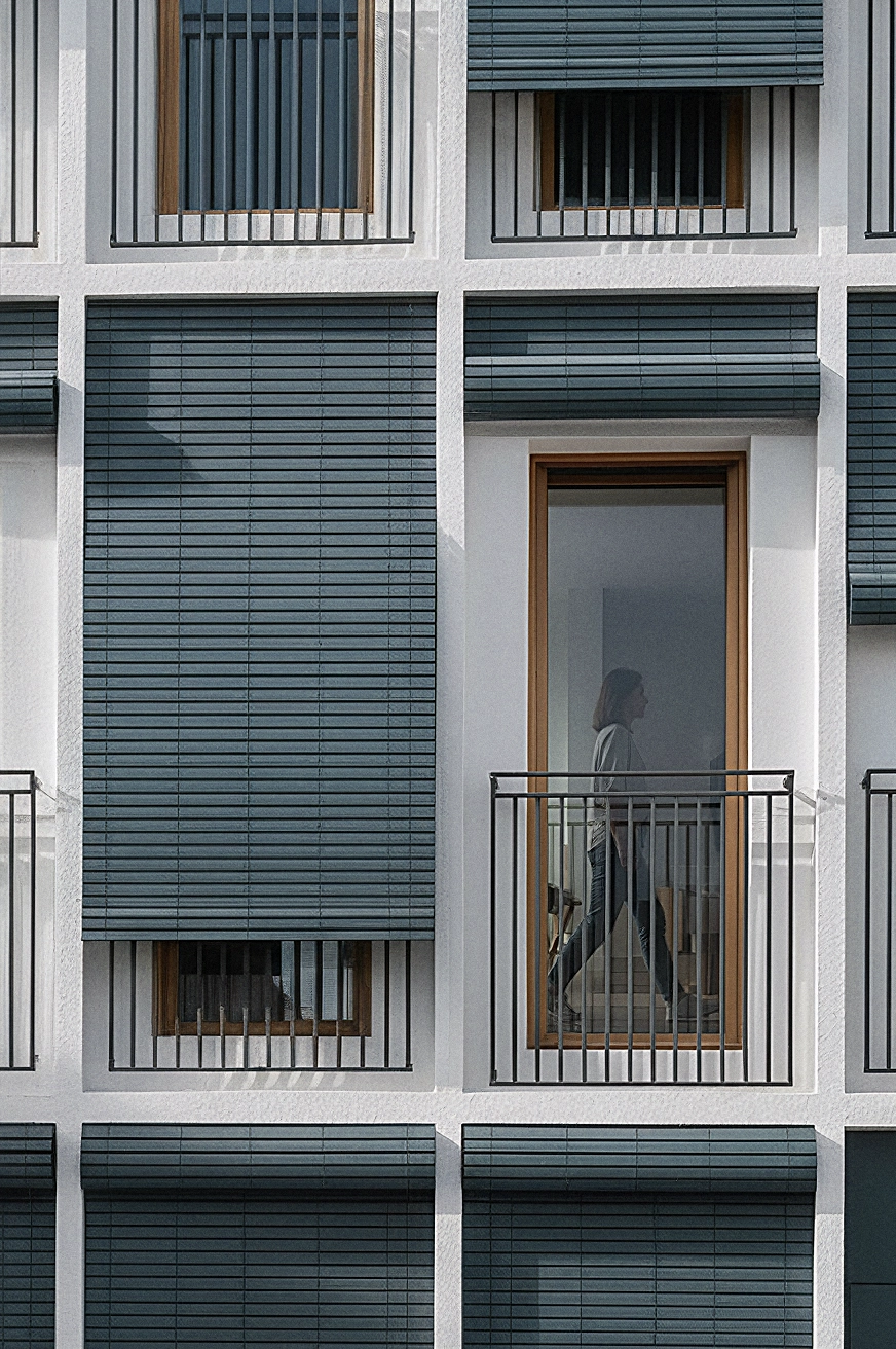 A medida que se introducían elementos obligatorios en edificios residenciales iban quedando menos metros aprovechables para los apartamentos. Finalmente optamos por convertir el núcleo de la escalera en ese elemento complejo capaz de ayudar a distribuir el espacio, iluminarlo y ventilarlo. La resolución de este núcleo, formal, constructiva y material, responde a cada uno de los objetivos marcados.